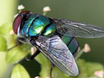 Mouche bleue métalisée, observée dans le Var -en octobre, sur végétation luxuriante-. -Accouplement- |