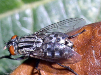 Phylum: Arthropoda - Arthropodes. Sub-phylum: Mandibulata - Mandibulates. Super-classe: Hexapoda - Héxapodes. Classe: Insecta - Insectes. Ordre: Diptera - Diptères (mouches vraies). Sous-Ordre: Brachycera - Brachycères. Famille: Sarcophagidae - Sarcophagidés. Genre: Sarcophaga. Espèce: carnaria. Nom vernaculaire: Mouche à damier, Mouche grise de la viande. Nom scientifique: Sarcophaga carnaria.